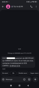 Si notre collègue avait appelé le numéro mentionné dans le message, un escroc lui aurait répondu, se faisant passer pour un banquier et lui aurait demandé de renvoyer des codes pour bloquer le prétendu paiement. Résultat: elle aurait en réalité validé une opération dont elle ne voulait pas.